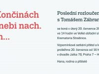 Poslední rozloučení s Tomášem proběhne v úterý 20. července ve 14.00, ve Velké obřadní síni strašnického krematoria.