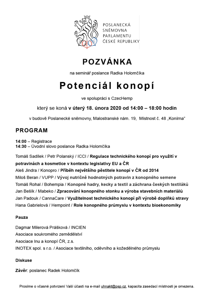 POZVÁNKA na seminář poslance Radka Holomčíka – Potenciál konopí