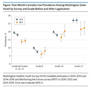 A tak výzkumníci z RAND Corporation a dalších organizací vytvořili vlastní model, kterým testovali závěry dřívější studie, a použili k tomu data ze státního průzkumu mezi mládeží Washington Healthy Youth Survey. Data neukázala vzestup, ale spíše malé, přesto však statisticky významné snížení v užívání marihuany mezi žáky osmých a desátých tříd.